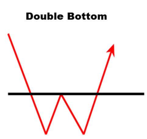 يحدث القاع المزدوج عند نهاية اتجاه هبوطي في السوق. وهو الشكل العكسي لنموذج القمة المزدوجة على الرسم البياني، ولكن في الاتجاه المضاد، حيث يوجد قاعان متتاليان للسعر يفصل بينهما قمة تحدد خط العنق. وعلى غرار تشكيل القمة المزدوجة، فإن القواعد المرتبطة بحجم التداول بالغة الأهمية: يجب أن يكون هناك زيادة ملحوظة في نشاط التداول أثناء الموجة الصاعدة، بينما تظل الأسعار مستقرة نسبيًا عند القاع الثاني.