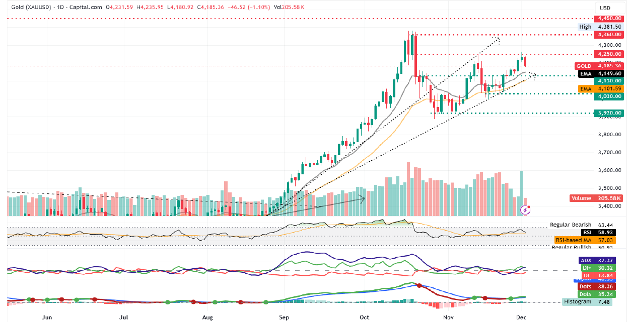 XAUUSD Chart – Gold futures pullback after climbing close to November highs as trade profit activity rises
