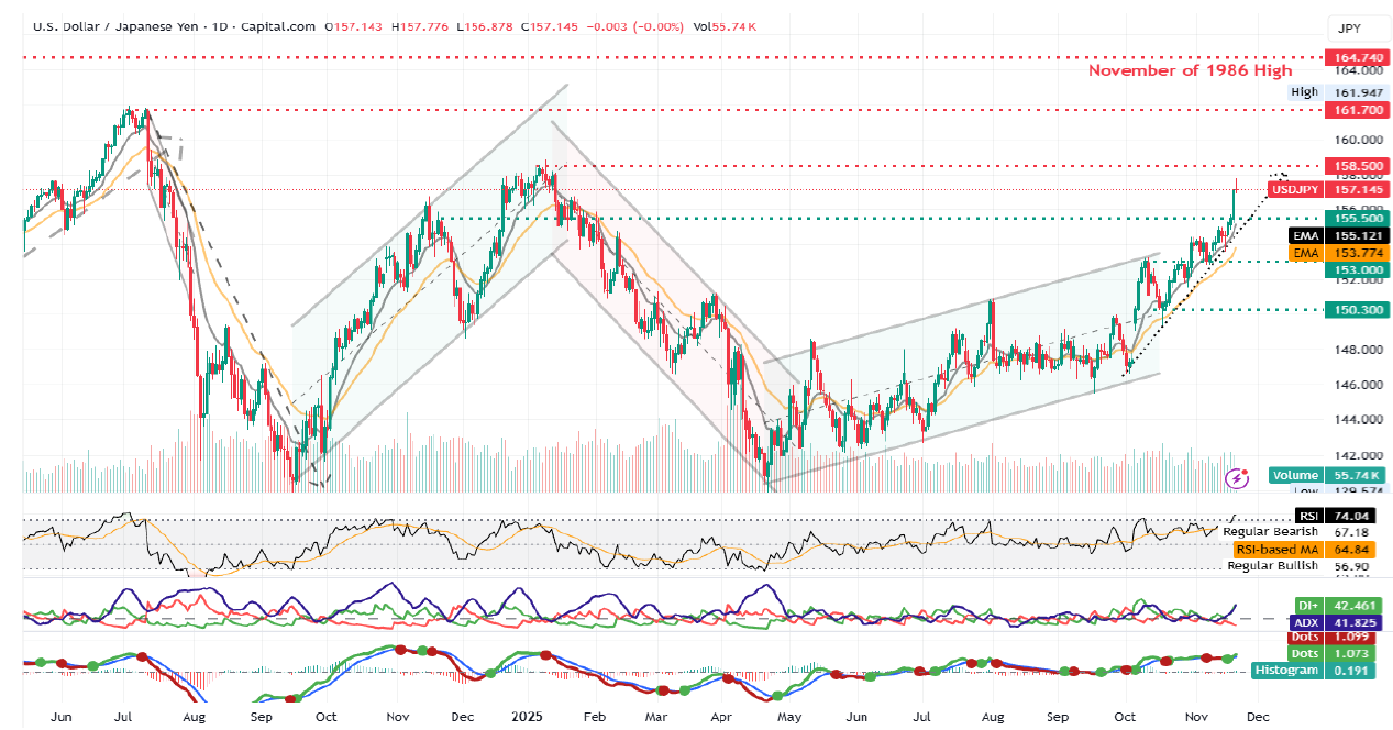 USDJPY Chart Bearish momentum against the Yen strengthens significantly after PM Takaichi unveils stimulus plans