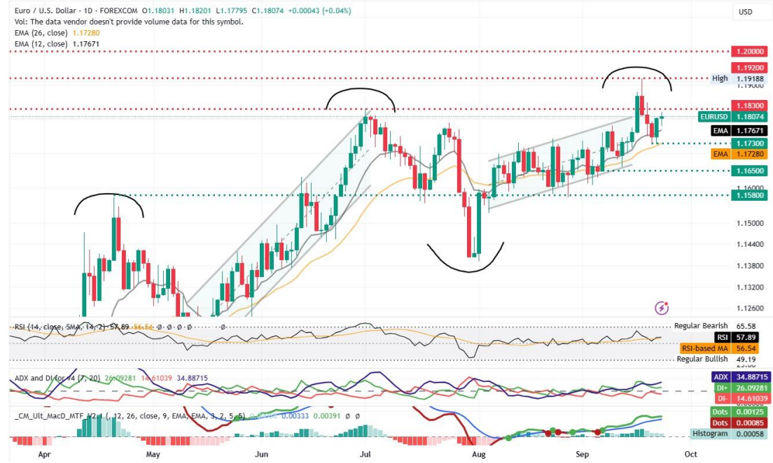 EURUSD Chart – Euro sticks close to the $1.1800 area after PMI data